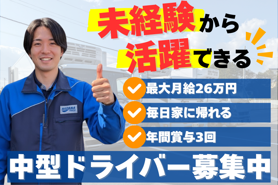 【普通免許で応募OK】固定ルート配送の4t中型ドライバー